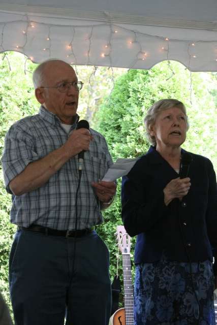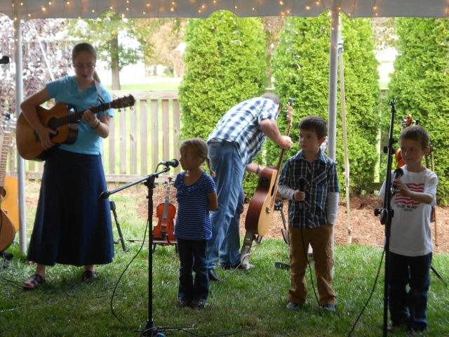 The program began by playing a recording of the wedding vows. Then Grandpa and Nana got up and sang “My Tribute” and “Through it All.” There was music by Mrs. Linda Greasley, Uncle Scott (who sang a song that he had written for Nana), grandson Myles and great-grandchildren Jay and Alexis sang “Jesus Loves Me,” and our family sang/played a couple of songs. Deborah was able to sing a song that she had written as a gift for Nana and Grandpa.