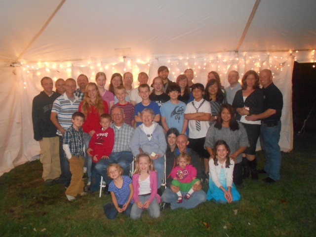 The Friday before, we gathered at Uncle Joe’s house for preparation for the celebration. There was a large tent set up in the back yard. It was a lot of fun to work with the family in getting the food preparation, decorations, party favors, and cleaning that needed to be done.
