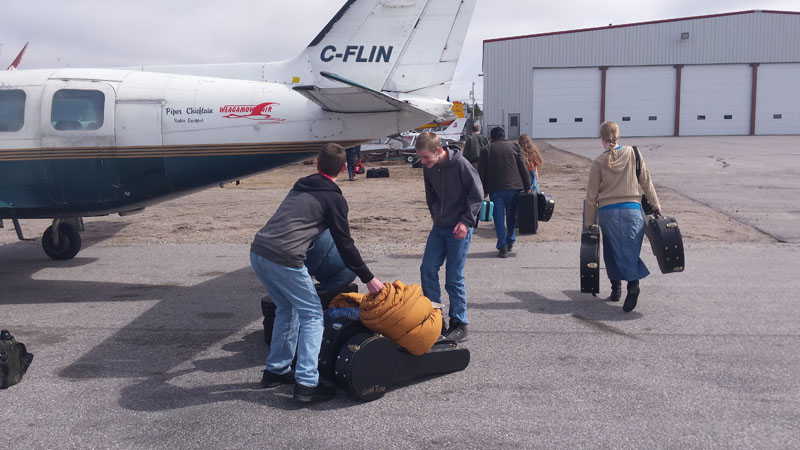 Back in March, our family was invited to go up to Weagamow (Round Lake)—a fly-in reserve in northwestern Ontario—to sing for some church meetings in the community. We were excited to be heading back again after five years. Thursday morning, we drove the long road to Pickle Lake where we would meet Dan—our radio ministry friend and missionary pilot—and fly out the next day. Due to the fact that there are seven of us, ten instruments, and our luggage, we needed to make three trips in the plane built for six people.