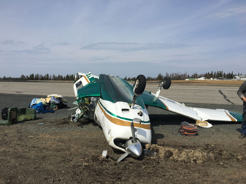 We hit the ground hard on the wheels of the plane. One of the tires blew out, causing the plane to spin. Then the left wing caught the ground and flipped the plane upside down. We skidded across the runway for about 50 feet, scooping up gravel and dirt through the broken windows. When we finally came to a stop, we were hanging upside down by our seat belts. While reassuring each other we were unhurt, we scrambled to unbuckle our seat belts and get out of the plane. Less than a minute after we crashed, we were all able to climb out and away from the wreckage.