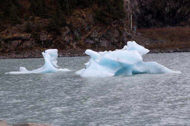 On our way back to Anchorage we pulled off to view a chunk of glacier that was actually floating in the water. And, of course, how often do you get to take a family picture with a floating glacier…?
